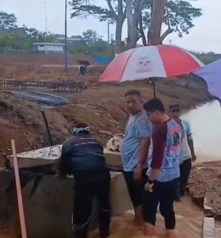 Mendengar laporan tersebut, Bupati Rokan Hulu, Anton, ST, MM, tanpa menunda waktu langsung menuju lokasi. Kehadiran beliau di tengah hujan deras, lengkap dengan sepatu boot dan payung seadanya, menjadi pemandangan yang memberi keyakinan bagi masyarakat bahwa pemerintah benar-benar hadir dalam setiap kondisi.