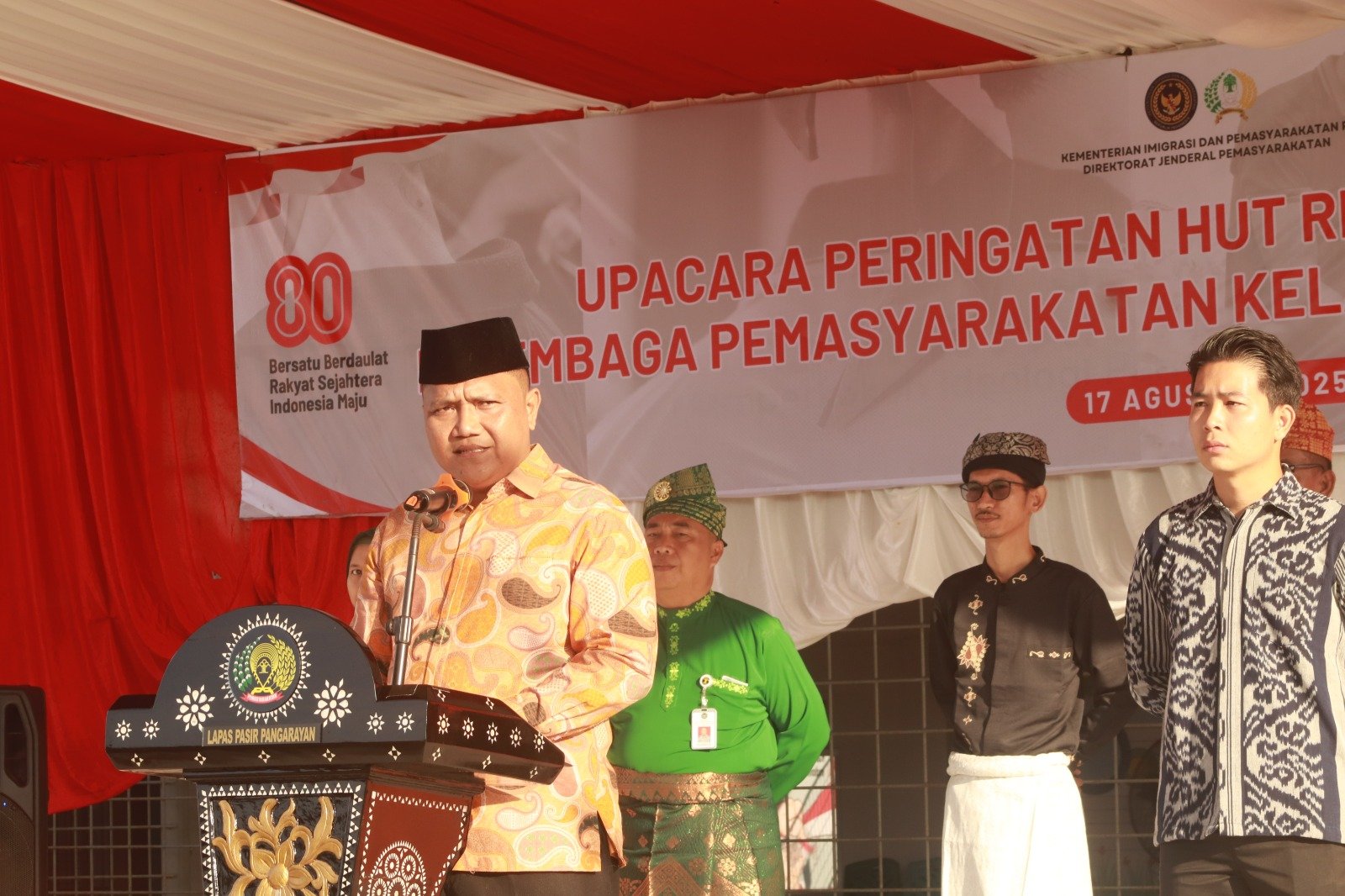 Pasir Pengarayan – Lembaga Pemasyarakatan (Lapas) Kelas IIB Pasir Pengarayan melaksanakan upacara bendera dalam rangka memperingati Hari Ulang Tahun (HUT) ke-80 Republik Indonesia, Minggu (17/8/2025).