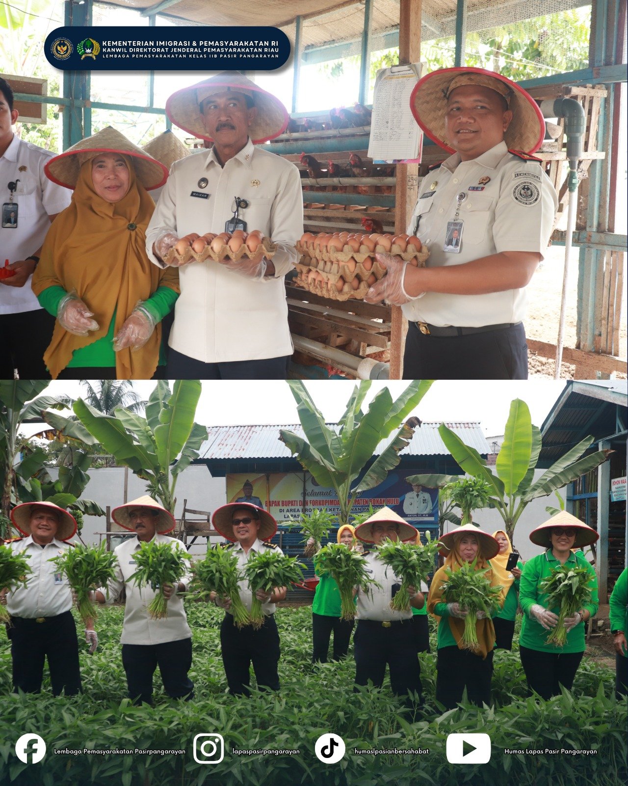 Di akhir kegiatan, Kakanwil Ditjenpas Riau bersama Ketua PIPAS Riau, Ny. Dian Hariani Maizar, berkesempatan meninjau sekaligus melaksanakan panen telur ayam dan sayur kangkung, serta menanam benih jagung di kebun ketahanan pangan yang dikelola oleh warga binaan Lapas Kelas IIB Pasir Pangarayan. Kegiatan ini merupakan bentuk dukungan terhadap program pembinaan kemandirian dan ketahanan pangan di lingkungan pemasyarakatan.