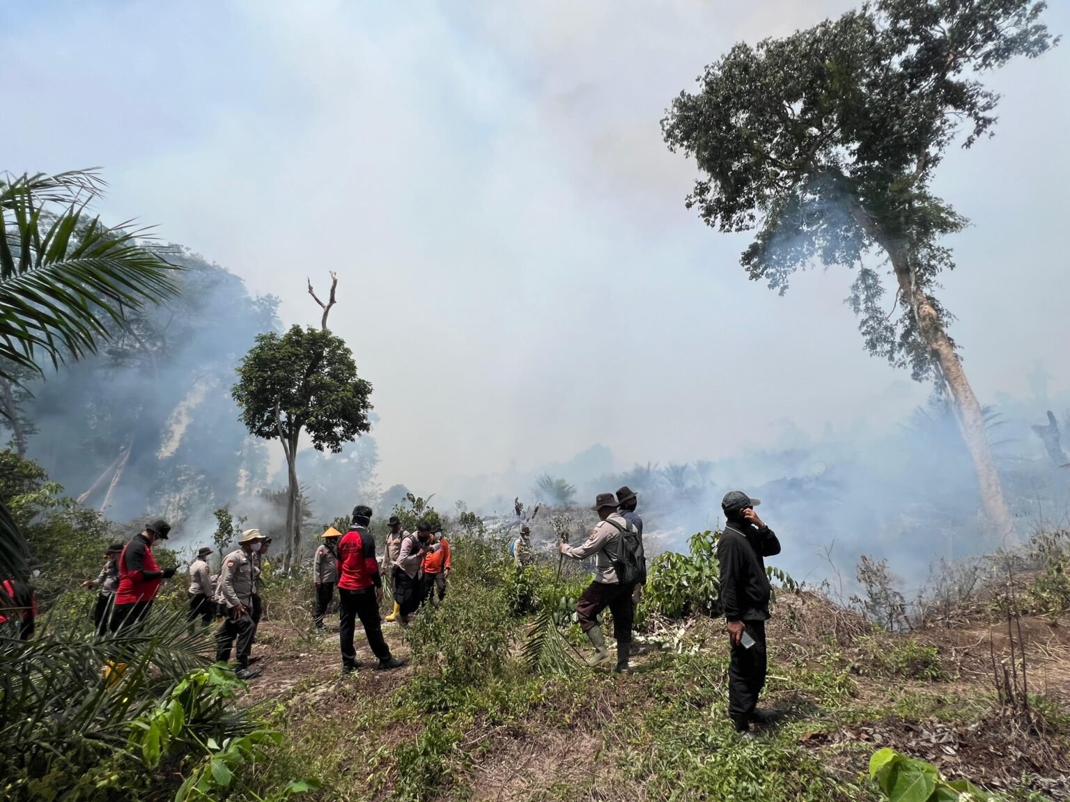 Kapolres Rohul dalam hal ini mengerahkan seluruh perwira polres Rohul serta personil polres Rohul untuk ikut serta memadamkan api yang diketahui masih membara, Sabtu, 18/07/2025.