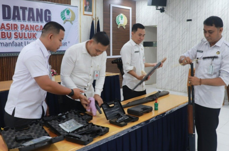 Pasir Pengaraian – Dalam upaya menjaga dan meningkatkan standar keamanan di lingkungan lembaga pemasyarakatan, Lapas Kelas IIB Pasir Pangarayan melaksanakan kegiatan rutin pengecekan sarana dan prasarana senjata api (senpi), Rabu (30/7).