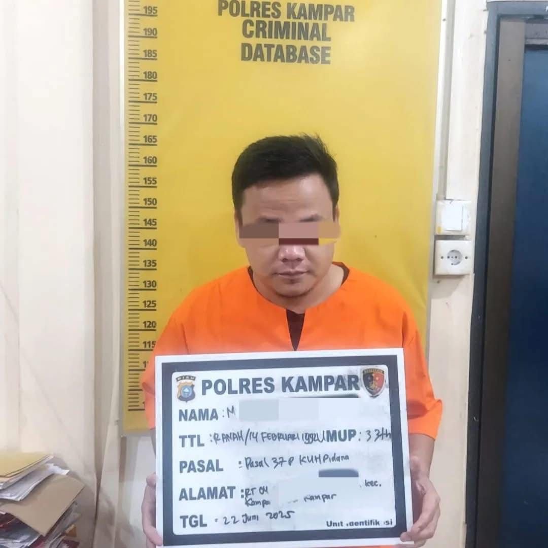 “Setelah alat bukti lengkap kita langsung tangkap pelaku di salah satu cafe di Bangkinang, Minggu (22/6/2025) sekira pukul 15.00 Wib,” Ujar Kapolres Kampar AKBP Mihardi M melalui Kasat Reskrim AKP Gian Wiatma J.