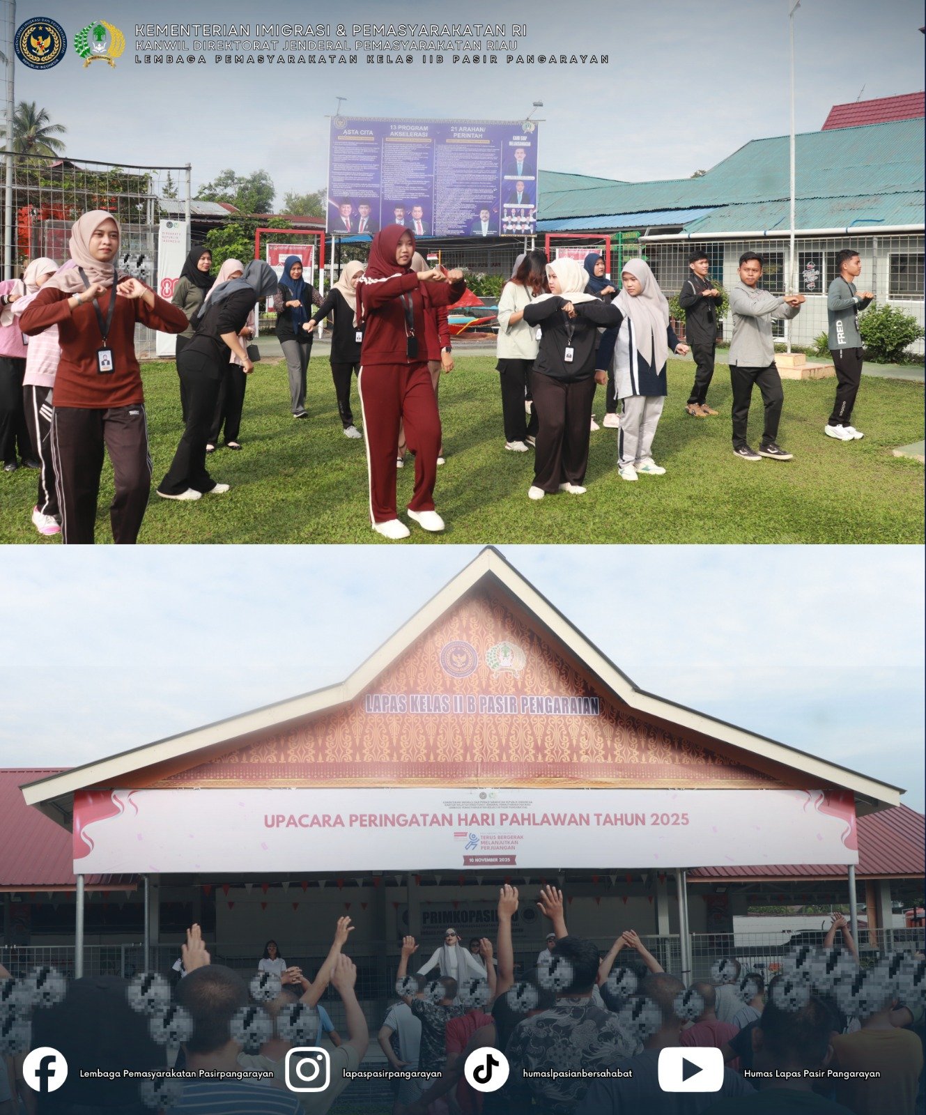 Pasir Pengaraian – Lapas Kelas IIB Pasir Pengarayan kembali melaksanakan kegiatan senam pagi rutin pada Sabtu yang diikuti oleh warga binaan dan peserta Magang Nasional, Sabtu (29/11/2025).