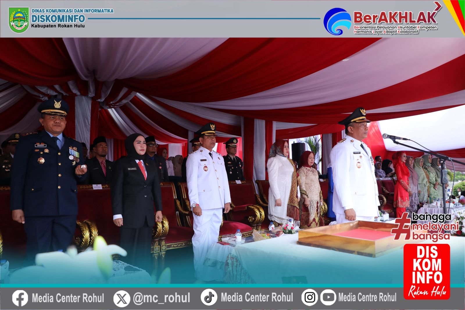 Upacara dihadiri juga oleh Wakil Bupati Rokan Hulu H. Syafaruddin Poti, SH, MM, Kapolres Rokan Hulu AKPB Emil Eka Putra Unsur Forkopimda, Sekretaris Daerah Muhammad Zaki, SSTP,M.Si, Asisten dan Staf Ahli Bupati, Kepala OPD, Pejabat Eselon III dan IV, serta camat dan Kades.