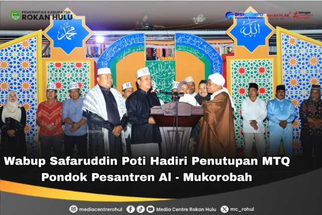 Rohul – Wakil Bupati Rokan Hulu (Rohul), H. Syafaruddin Poti, S.H., M.M, hadiri acara penutupan Musabaqah Tilawatil Qur’an (MTQ) Pondok Pesantren Al-Mukorobah yang berlangsung di Surau Suluk Al-Mukorobah, Siki Lubuk Bendahara, Kecamatan Rokan IV Koto, Sabtu (24/01/2026).